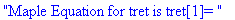 > print("Maple Equation for tret is tret["||nq||"]= ",tretsol[nq]); This will print the formula for the solution if Maple can find one. As stated above, however, this solution is not normally used.