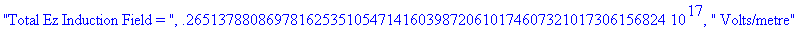 > print("Total Ez Induction Field = ",Eindzc," Volts/metre");